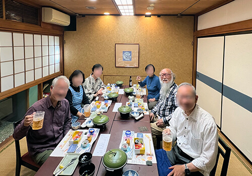 写真は2023.11.9伊豆下田 黒船ホテルにて、各客室に露天風呂付で良かった。今回は、病欠・海外行等で参加者が少なかった。この回 山本家が幹事。